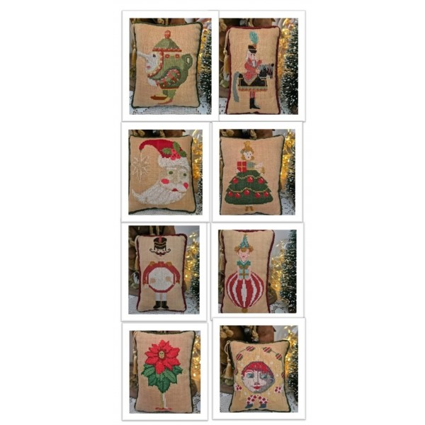 Acht Stickvorlagen mit skurril-nostalgischen Weihnachtsmotiven